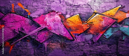 Colorful abstract graffiti wall art with vivid purple, orange, and turquoise paint against a textured surface Copy Space