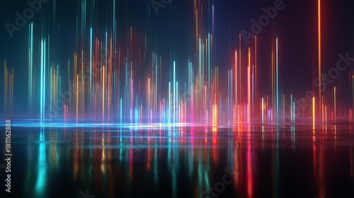 Colorful abstract light lines with reflections on dark background