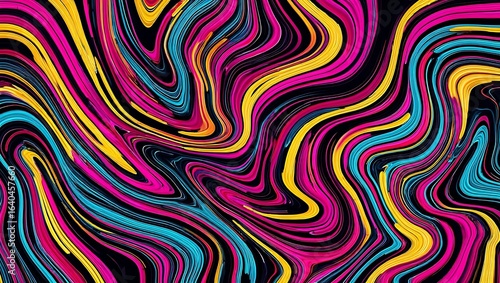 Colorful abstract liquid waves with pink, yellow, cyan, and black in a mesmerizing psychedelic style.