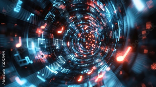 Colorful Abstract Music Visualization with Swirling Digital Notes