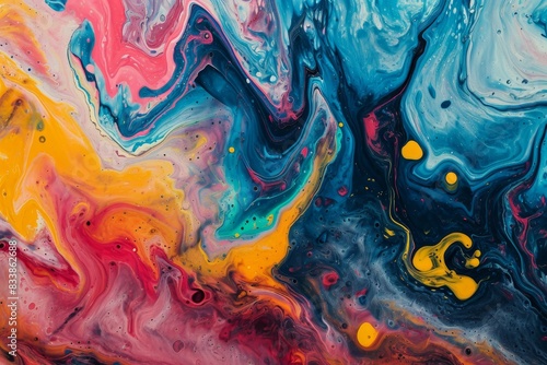 Colorful abstract painting with vibrant swirls of blue, red, and yellow, creating a dynamic and energetic composition, AI-generated