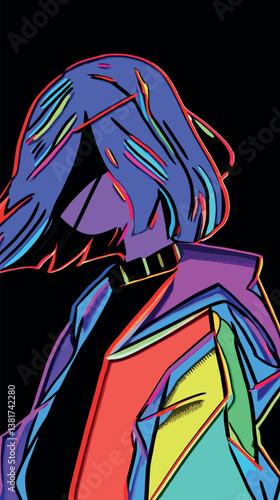 Colorful abstract portrait of a young female in vibrant neon style