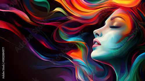 Colorful abstract portrait of woman with flowing hair and vibrant colors