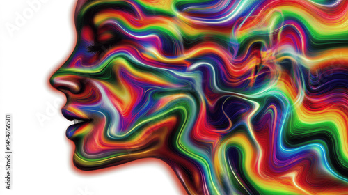 Colorful abstract portrait showcasing vibrant patterns and flowing designs on a human face in a futuristic style