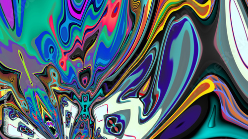 Colorful abstract psychedelic and fluid background for music, Happy New Year 2024