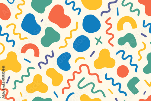 Colorful abstract shapes create a lively pattern on a soft background for arts and crafts projects