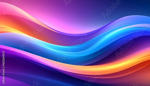 Colorful abstract wave with smooth flowing curves and vibrant gradient in blue, purple, orange, and yellow, isolated on white background.