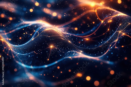 Colorful abstract waves of light and particles create a mesmerizing digital background