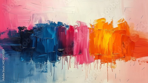 Colorful acrylic paint strokes with dynamic texture on canvas