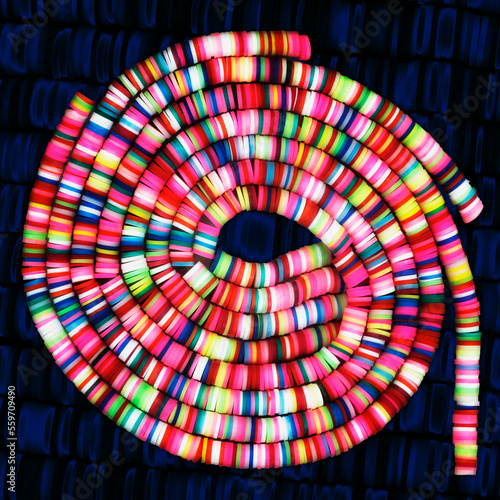 Colorful African pearls, close-up image, high-definition photo, textured dark background