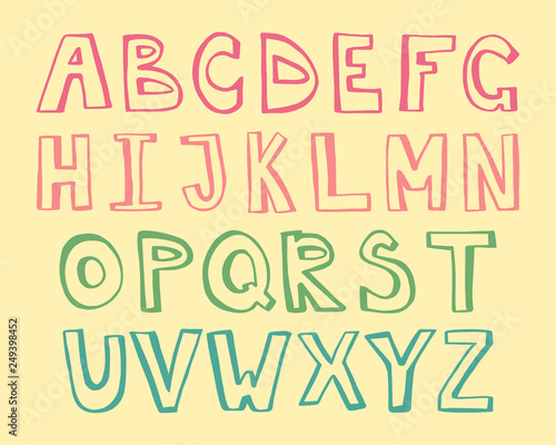Colorful alphabet for your banners or invitations. Set of handdrawn letters made in vector isolated on beige background