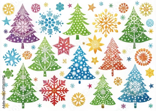 Colorful and delicate Christmas stencils featuring festive shapes, snowflakes, and trees, ideal for DIY crafts, scrapbooking, and holiday decorations on white backgrounds or textures.