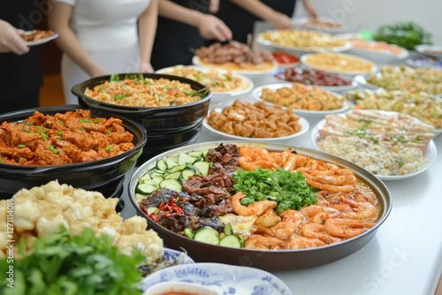 Colorful and Diverse Buffet Spread of Delicious Asian Cuisine