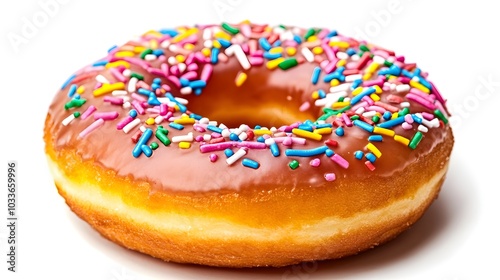 Colorful and Glossy Donut with Sprinkles Offering a Sweet Delight