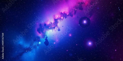 Colorful and mesmerizing image of a vibrant nebula and galaxies stretching across a cosmic background, space exploration, outer space
