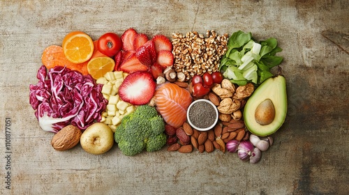Colorful and Nutritious Food Arrangement: A Healthy Eating Guide
