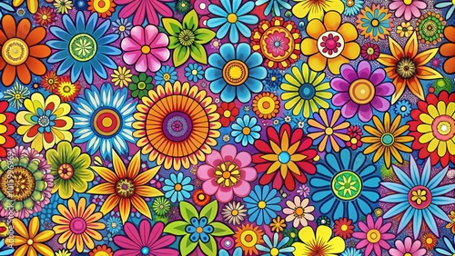 Colorful and vibrant flower pattern with a groovy hippie style, groove, hippie, style, flowers, pattern, retro, 70s