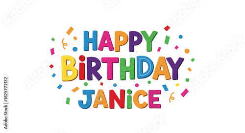 Colorful Animated Happy Birthday Janice Illustration on White Background