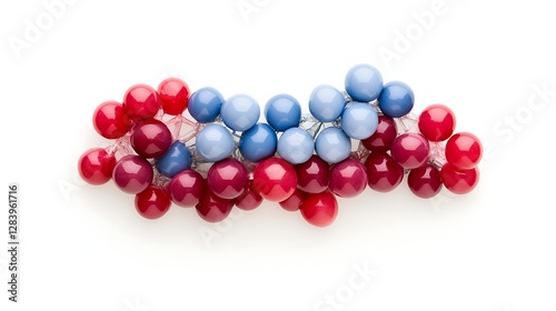 Colorful arrangement of glossy spheres in red, blue, and white shades on a white background for abstract design use