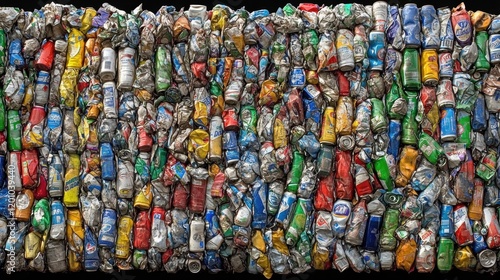 Colorful Array of Crushed Cans for Recycling and Sustainability Efforts