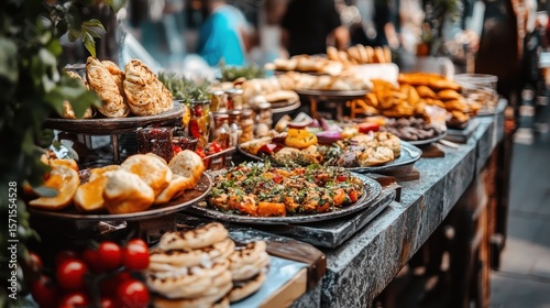 Colorful Array of Freshly Prepared Dishes at Outdoor Food Market
