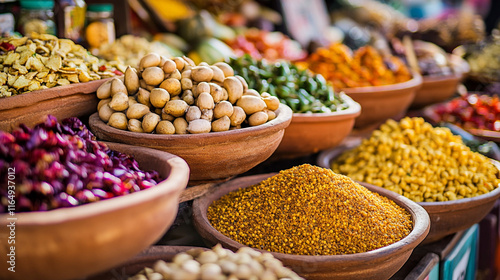 Colorful array of spices displayed at a vibrant market in India during the daytime