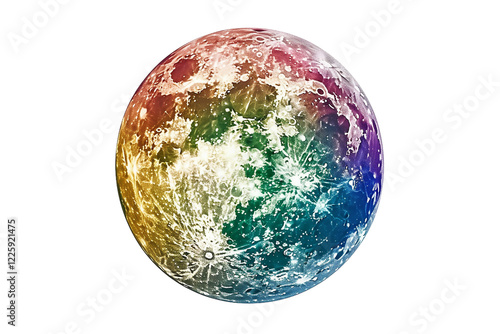 Colorful Artistic Representation of the Moon With Vibrant Hues Showcasing Its Surface Features