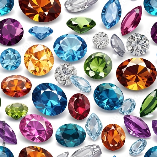 Colorful Assorted Gemstones in Various Cuts and Shapes on White Background