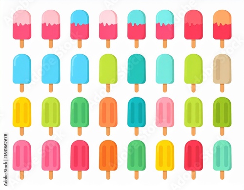 Colorful Assorted Ice Pops on White Background in Flat Style