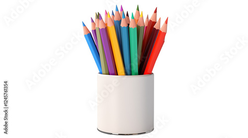 Colorful Assortment of Art Supplies in a White Container for Creative Projects and Education