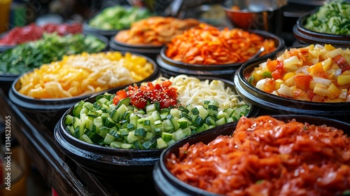 Colorful Assortment of Freshly Prepared Vegetables at a Vibrant Market Stall Showcasing Local Ingredients in an Outdoor Setting