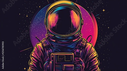 Colorful astronaut in space, vibrant art, retro style, artistic representation, digital illustration