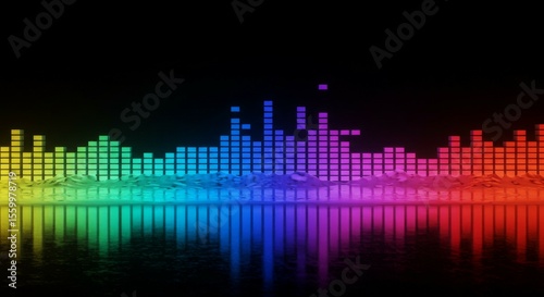 Colorful Audio Spectrum Visualization with Reflections in Dark