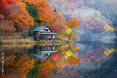 Colorful autumn fall foliage Icho Namiki Avenue, Japan