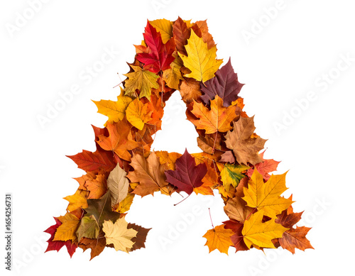 Colorful Autumn Leaves Forming the Letter A in Fall Theme Design