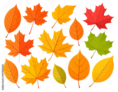 Colorful autumn leaves isolated on black, floating in air. Could be used for seasonal design