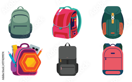 Colorful Backpack Vector Set | School, Travel, and Student Bag Illustration Collection.