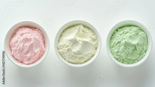 Colorful Baking Ingredients in Bowls on White Background