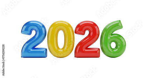 Colorful balloon numbers 2026 3d rendered isolated on transparent background