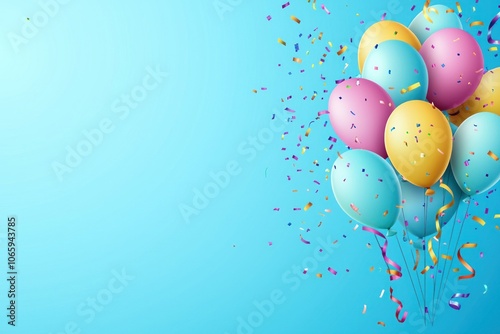 Colorful Balloons and Confetti on a Blue Background
