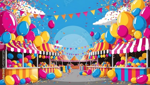 Colorful Balloons and Festive Market Stalls