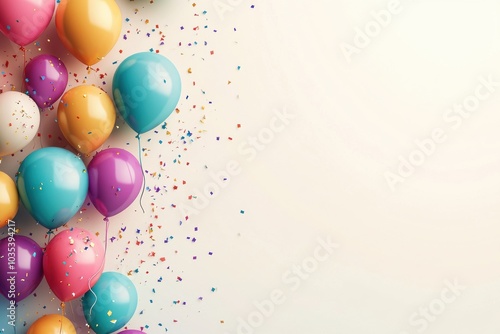Colorful balloons and shimmering confetti brighten up a festive celebration backdrop