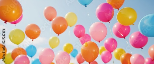 colorful balloons floating , copy space concept for wallpaper or background