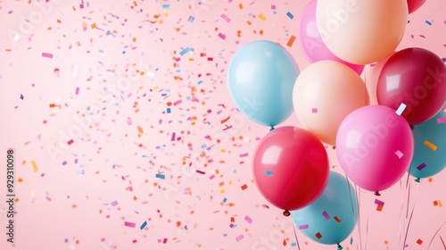 Colorful balloons floating against a pink backdrop, creating a festive atmosphere filled with joy and celebration.