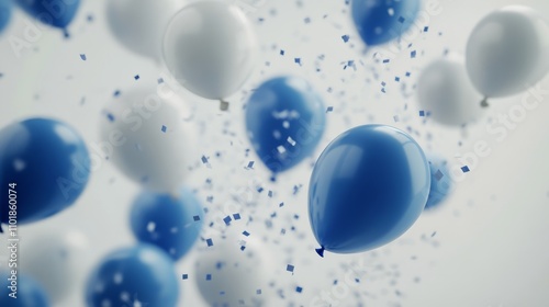 Colorful balloons floating in the air at a festive celebration with confetti