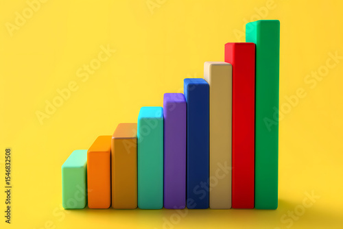Colorful Bar Graph Displaying Upward Trend on Yellow Background, Illustrating Business Growth, Financial Success, and Positive Performance with Vibrant Visual Representation of Data Analysis