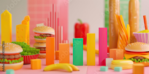 Colorful bar graphs comparing profits across different product lines in a food franchise.