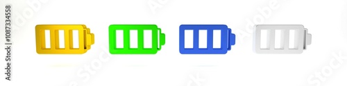 Colorful Battery charge level indicator icon isolated on white background. Minimalism concept. 3D render illustration