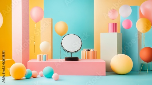 Colorful beauty and fashion accessories on pastel background vibrant makeup and skincare modern display