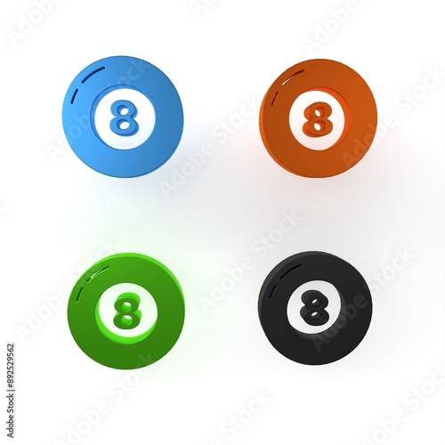 Colorful Billiard pool snooker ball icon isolated on white background. Minimalism concept. 3D render illustration